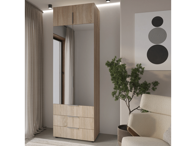 Шкаф 2Д3Ш Версаль Дуб сонома Зеркала + Антресоль Феникс