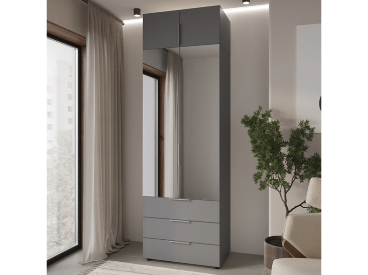 Шкаф 2Д3Ш Версаль Графит Зеркала + Антресоль Феникс