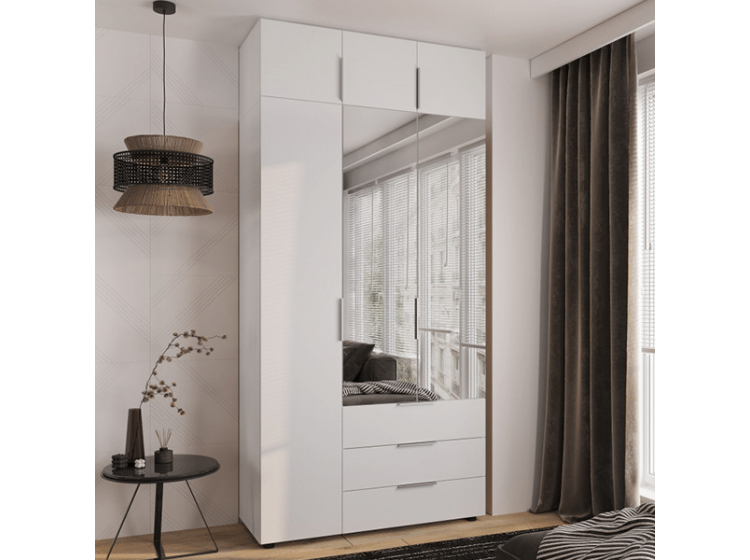 Шкаф 3Д3Ш Версаль Белый (2 Зеркала маленьких) + Антресоль Феникс