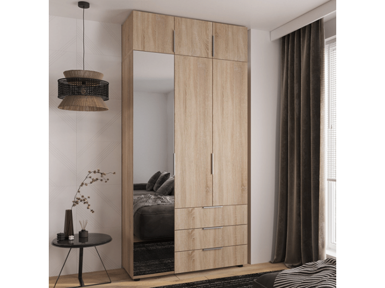 Шкаф 3Д3Ш Версаль Дуб сонома (1 Зеркало большое) + Антресоль Феникс