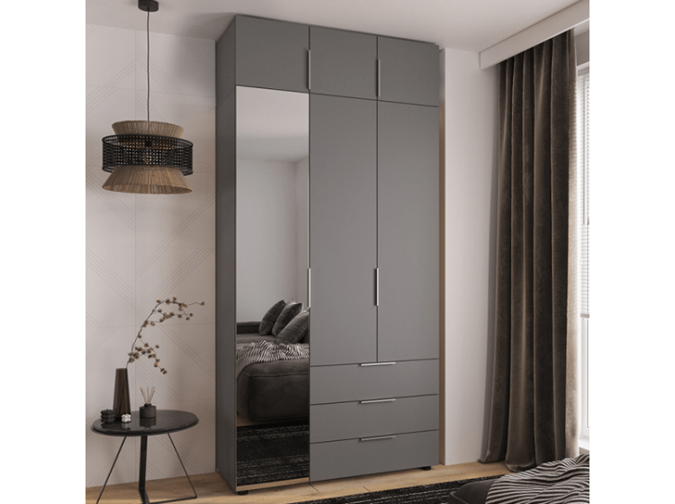 Шкаф 3Д3Ш Версаль Графит (1 Зеркало большое) + Антресоль Феникс