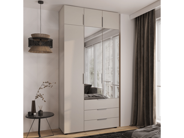 Шкаф 3Д3Ш Версаль Кашемир (2 Зеркала маленьких) + Антресоль Феникс