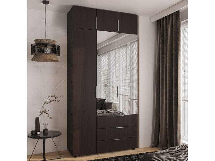 Шкаф 3Д3Ш Версаль Венге (2 Зеркала маленьких) + Антресоль Феникс