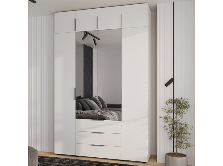 Шкаф 4Д3Ш Версаль Белый (2 зеркала маленькие) + Антресоль Феникс