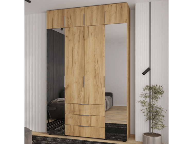 Шкаф 4Д3Ш Версаль Дуб крафт золотой (2 зеркала большие) + Антресоль Феникс