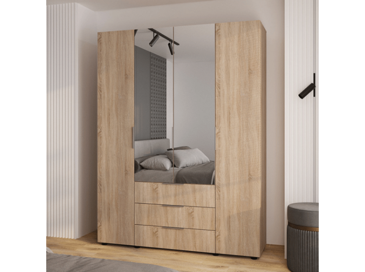 Шкаф 4Д3Ш Версаль Дуб сонома (2 зеркала маленькие) Феникс
