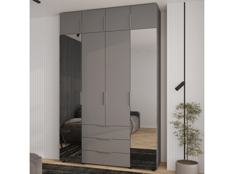 Шкаф 4Д3Ш Версаль Графит (2 зеркала большие) + Антресоль Феникс
