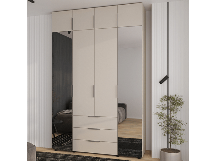 Шкаф 4Д3Ш Версаль Кашемир (2 зеркала большие) + Антресоль Феникс
