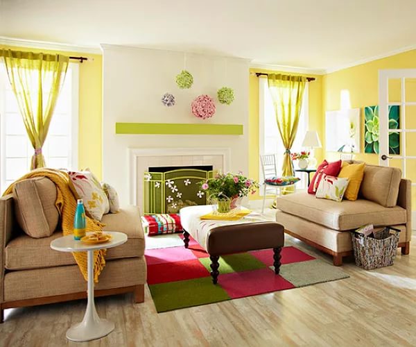 У вітальні теж варто поміняти штори. Заберіть масивні, запорошені килими. Нарядіть ваш диван яскравим пледом та подушками. Щоб відчувати аромат весни, купіть букет нарцис чи тюльпанів. Квіти чудово пожвавлюють інтер'єр. Якщо ваші стіни дозволяють, купіть картину з весняною тематикою. Варто зазначити, що такі картини мають особливу енергетику, тому що весна має силу надихати творчих людей.