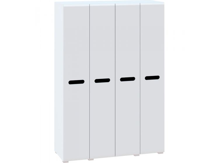 Четырёхдверный вместительный шкаф от украинского производителя. Шкаф на полу размещается на удобных металлических ножках. В производстве шкафа используется ДСП. Фасад у шкафа сделан из МДФ. В середине шкафа есть вместительные ниши для верхней одежды с штангами для тремпелей и удобные полки. Цветовое решение корпуса шкафа: белый, дуб сонома. Фасад у шкафа окрашен в белый цвет. Данная модель оборудована 4-мя дверца. Центральные дверцы при необходимости могут быть оснащены зеркальными полотнами.
