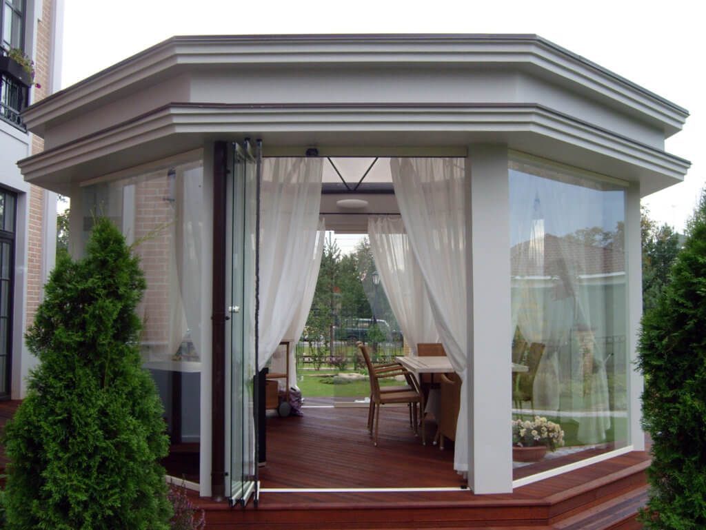 Альтанки, розташовані на вашій дачній ділянці, можна засклити одним із матеріалів на вибір - пластиком або алюмінієм. Все залежить від ваших уподобань та потреб у рівні збереження тепла. Алюмінієве скління гірше підтримує температурний режим, але його ціна є значно доступнішою. Пластикові конструкції слід вибирати людям, які воліють проводити час на відкритому повітрі цілий рік, влаштовуючи пікніки та сімейні застілля на природі.
